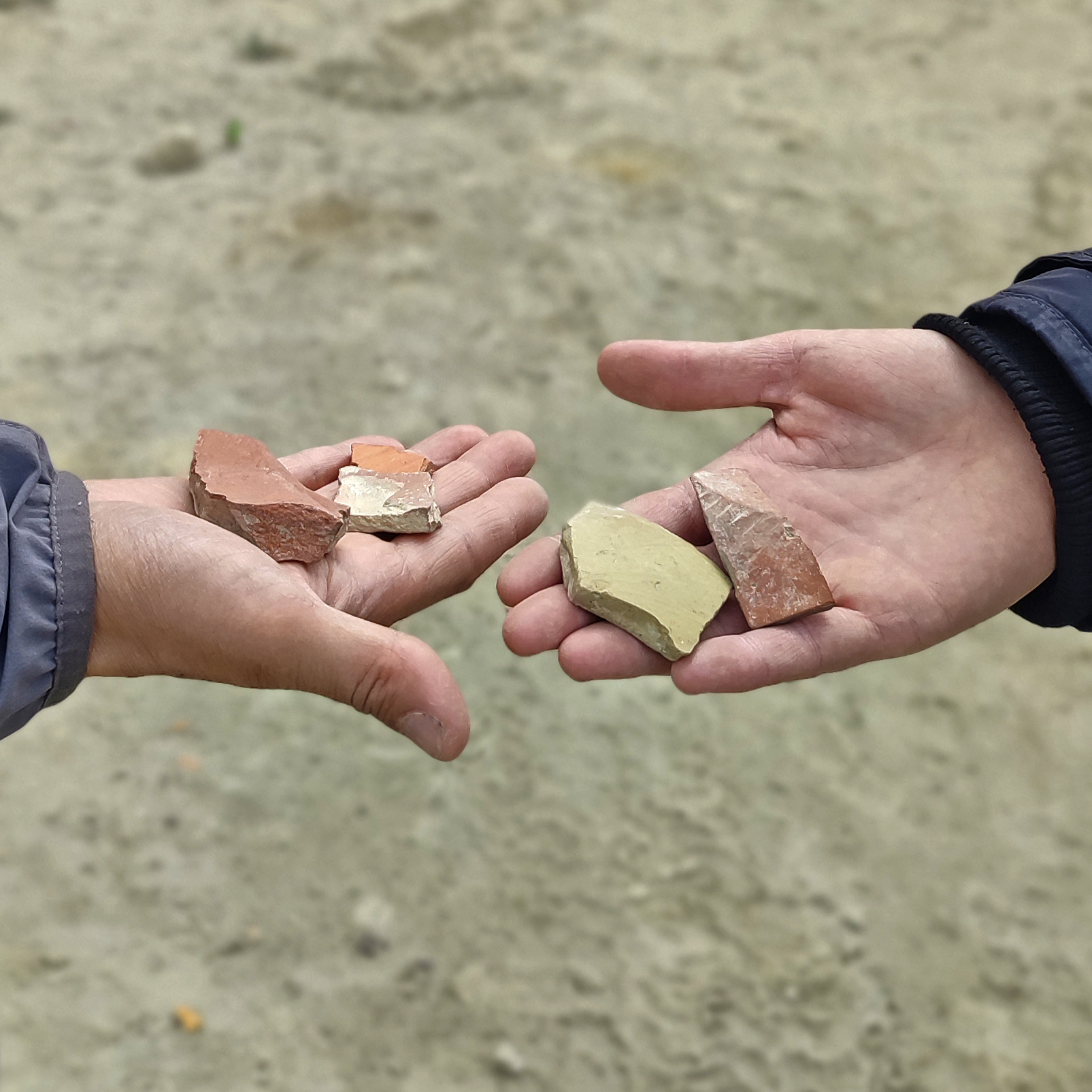 Мы не стали рисковать и лезть высоко, вместо этого, у подножия горы, сосредоточили своё внимание, чтобы попытаться отыскать древние артефакты, свидетельствующие о пребывании тут людей. И нашли-таки пару глиняных черепков (небольшие осколки некой посуды). Честно сказать, выглядели они не слишком древними. Но мы не археологи, чтобы судить о таких вещах, потому и закралась мысль: может, это такой приём для привлечения туристов?!