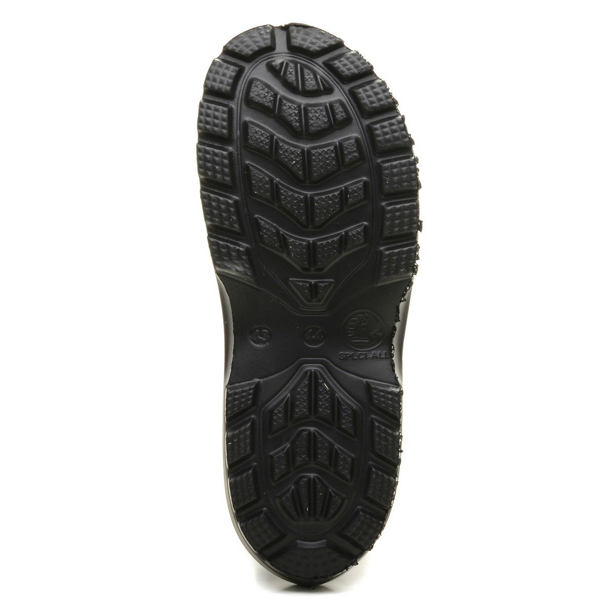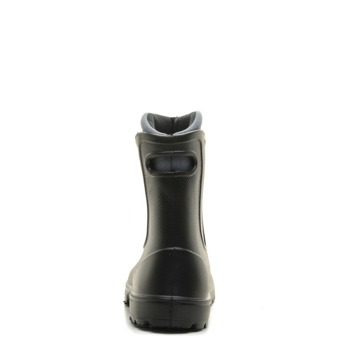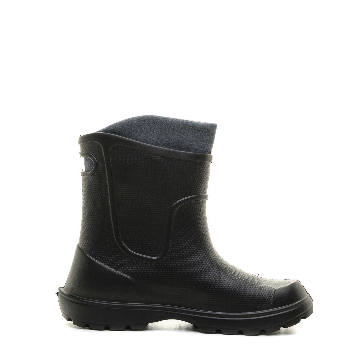 Данные черные ботинки — короткие сапоги зимние мужские, которые выдерживают мороз до 15 градусов. Внутри находится мягкая подкладка из поролона, закрытая трикотажным полотном. Благодаря этому зимние натуральные мужские сапоги не вызывают аллергии. Внешний материал — эва, то есть специальный каучук, который с успехом применяют для такого рода обуви. Сапоги эва очень легкие, благодаря чему их можно брать с собой в походы или на дачу в качестве сменной обуви. А также они очень износостойкие.