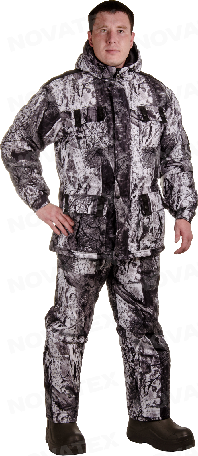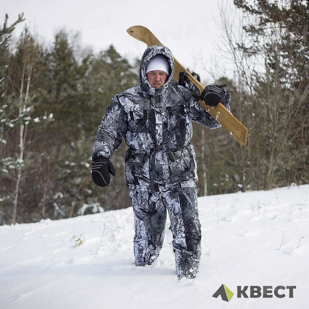 Зимний костюм «Снеговик» (ТМ КВЕСТ) – легкий и теплый, простого кроя и невероятно удобный благодаря продуманному дизайну. Его по достоинству оценят любители зимней рыбалки и охоты, поскольку в нем комфортно при 20 градусах мороза, а утеплитель «Русский север» и мембранная бесшумная ткань алова не дадут замерзнуть и при 35-градусном морозе.