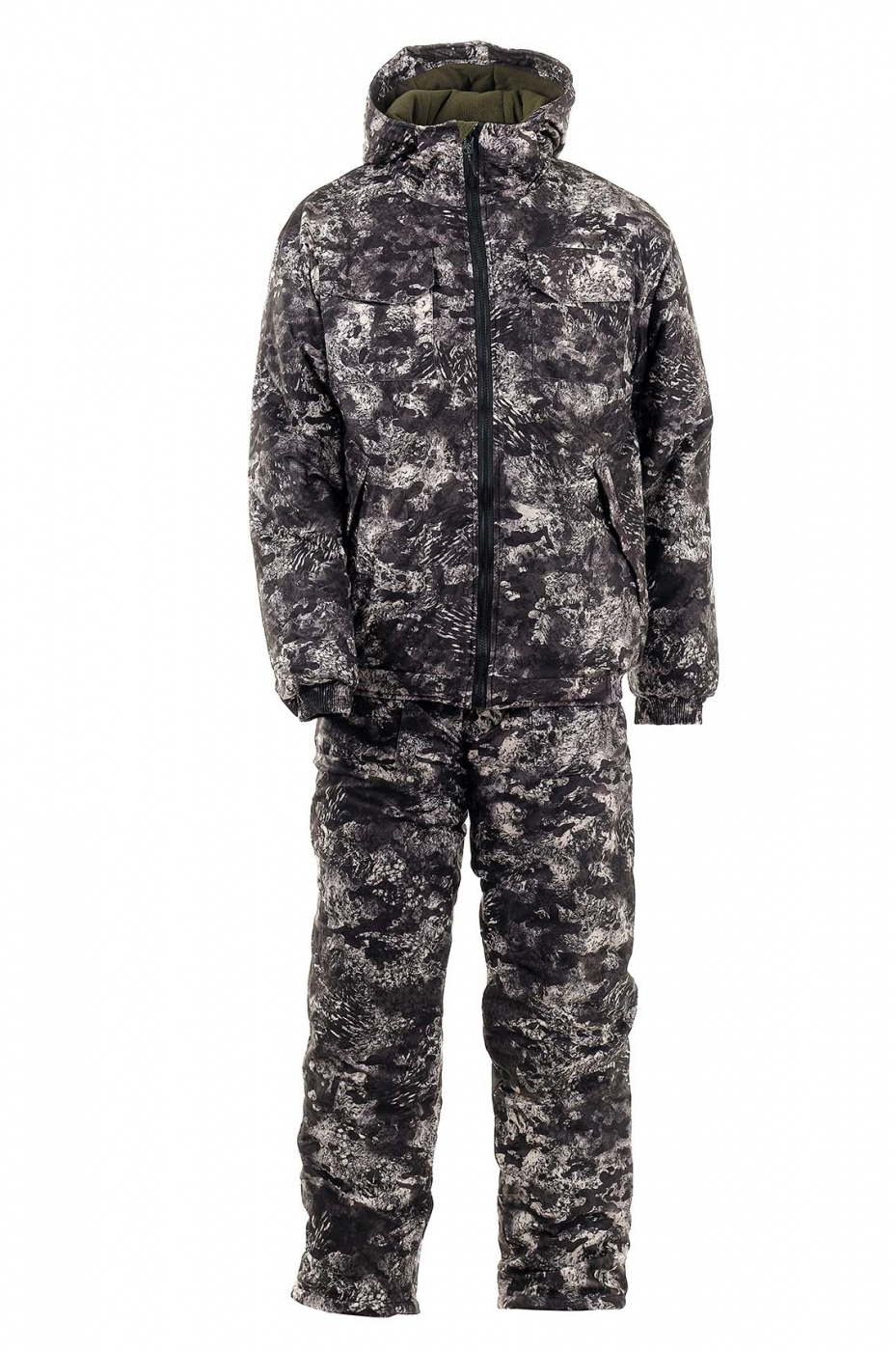 Костюм Вепрь предназначен для работы и активного отдыха при низких температурах. Костюм выпускается для категории покупателей, предпочитающих укороченную куртку на резинке. Высокий комбинезон защищает поясницу от продувания, а также несет функции дополнительного утепления для спины и груди. Бесшумная ткань алова в комбинации с мембранной пленкой Mercury-Tex Active с показателями 10000/8000 обеспечивает защиту от ветра и снега. Термоподклад отражает тепло тела и обеспечивает комфорт в суровые морозы. Современный утеплитель Русский Север дает возможность комфортно себя чувствовать при температуре минус 20 градусов (температура Экстрим до -35 градусов).