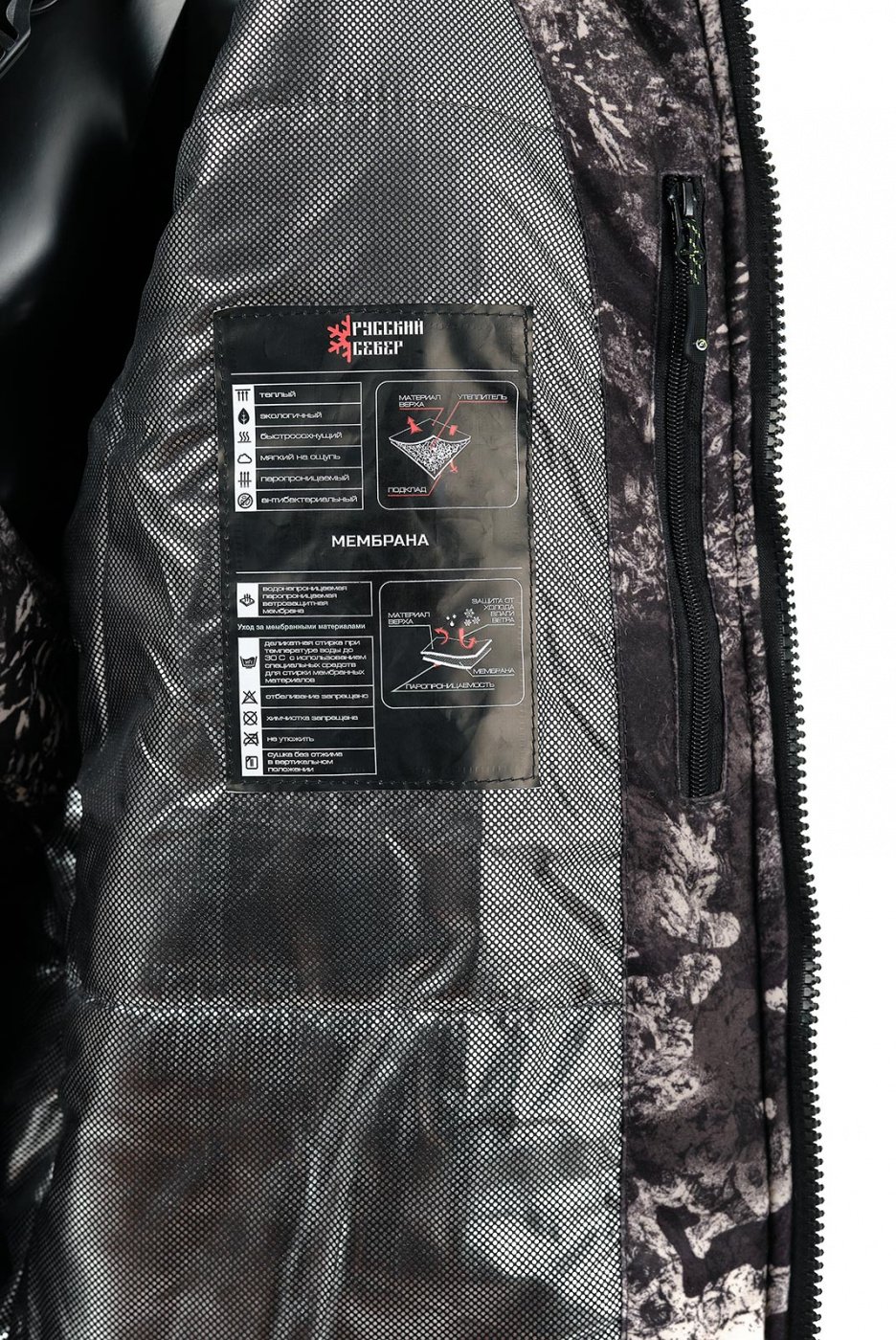 Подклад: термоподклад (фольгированная таффета в теле куртки, 100% ПЭ 60 гр/м2), таффета (в рукавах и полукомбинезоне, 100% ПЭ 60 г/кв.м), флис (капюшон, воротник и карманы, 100% ПЭ 130 г/кв.м)